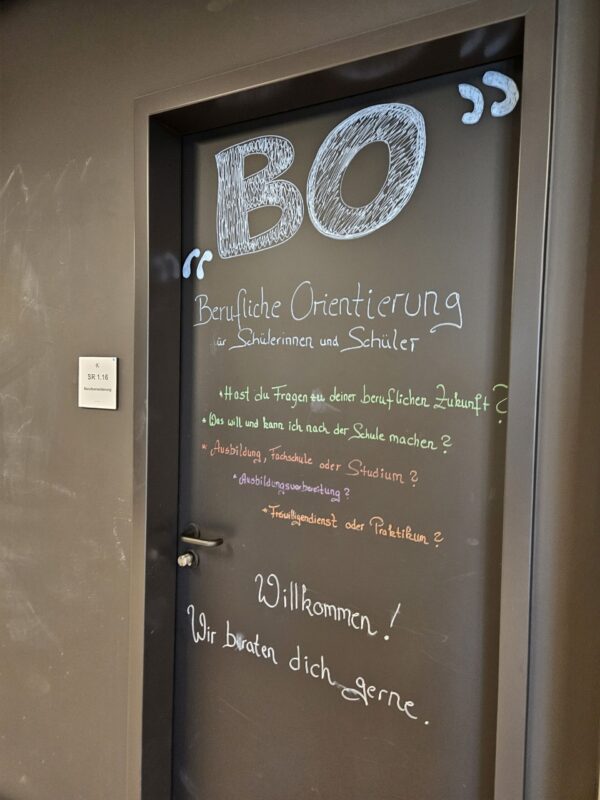 Wo und wann ist das „BO Team“ in der Schule zu finden? Im BO-Beratungsraum SR 1.16 im ersten Stock des Südriegels neben dem kleinen Treppenaufgang.